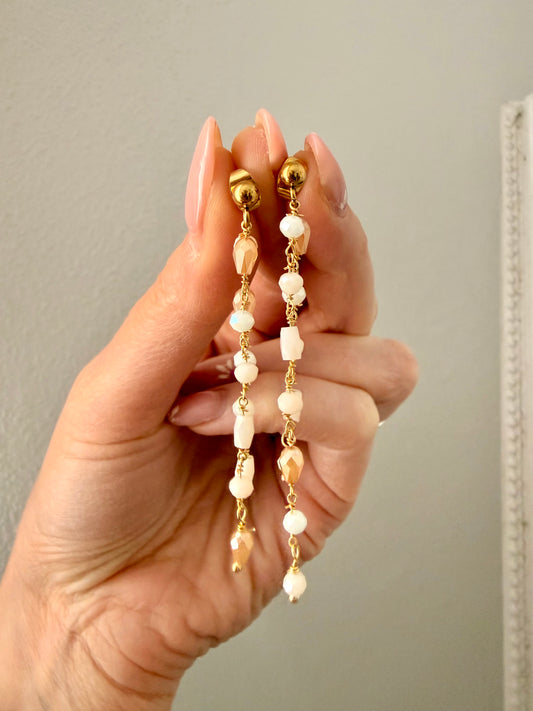 ORECCHINI CASCATA CON PIETRE SINTETICHE BEIGE/PANNA