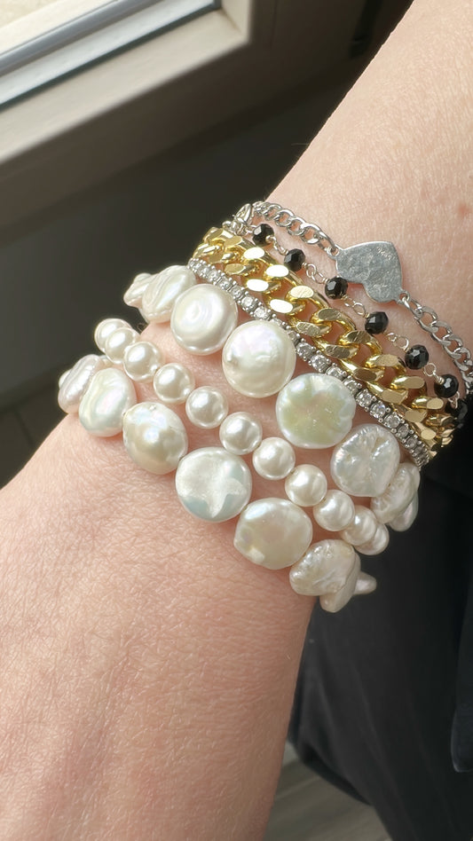 BRACCIALE CATENA ROLÒ ALTERNATA DA PERLE BIANCHE CON STELLA ROSÈ