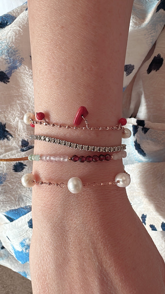 BRACCIALE CATENA RONDELLE DIAMANTATE ALTERNATA DA PERLE BIANCHE POTATO