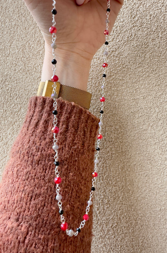 COLLANA CRISTALLI GRIGIO, NERO E BORDEAUX