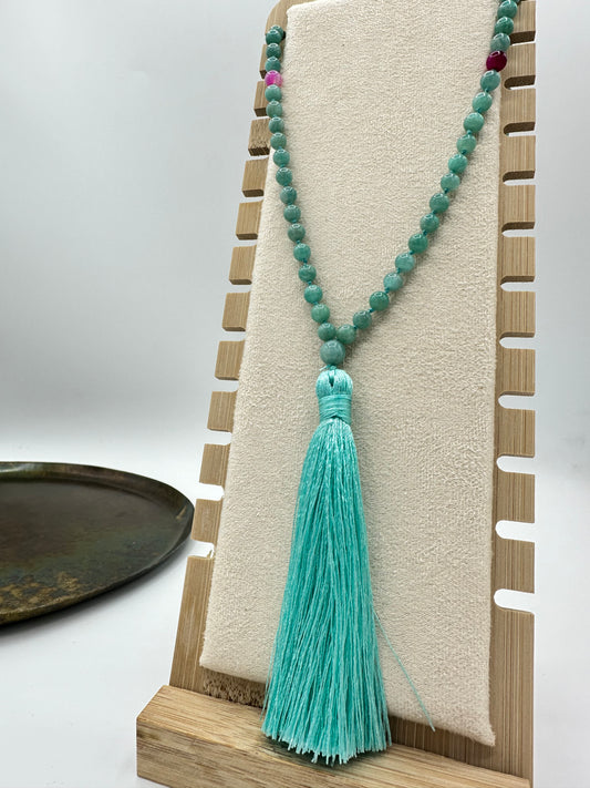 MALA CON AMAZZONITE E AGATA STRIATA FUCSIA