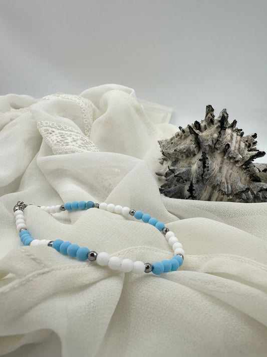 CAVIGLIERA CON CRISTALLI AZZURRO POLVERE E AVORIO