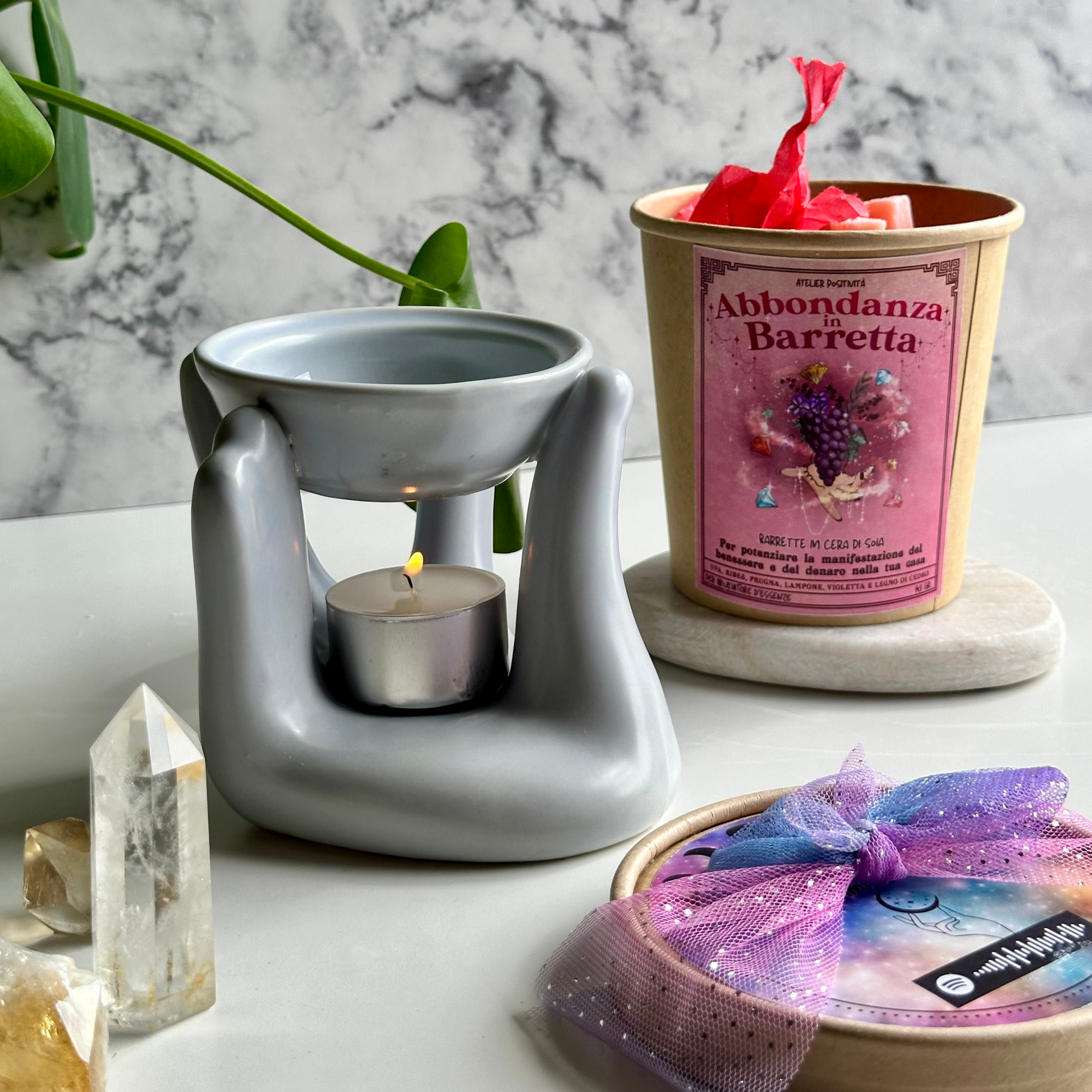 Riempi la tua vita di prosperità con Abbondanza in Barretta. Apri il barattolo, goditi il profumo avvolgente, stacca un pezzetto della barretta e inseriscila nel tuo bruciaessenze preferito.