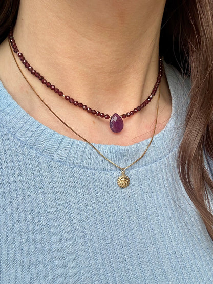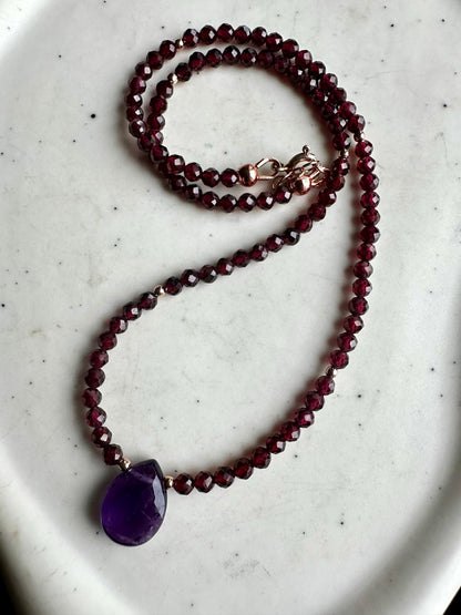 COLLANA CON GRANATO E GOCCIA DI AMETISTA