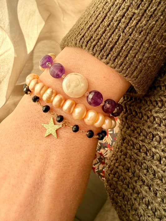 BRACCIALE CON CRISTALLI NERI E STELLINA DIAMANTATA