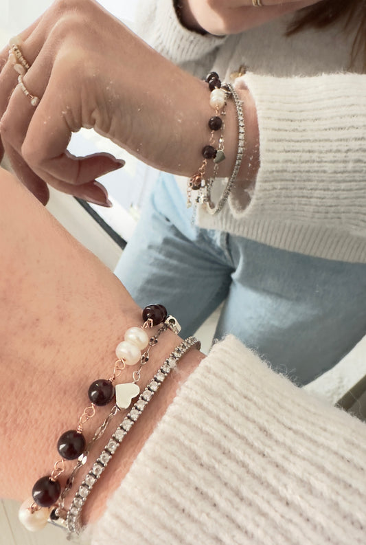 COLLANA CATENA DADINI ALTERNATA DA PERLE BIANCHE E GRANATO