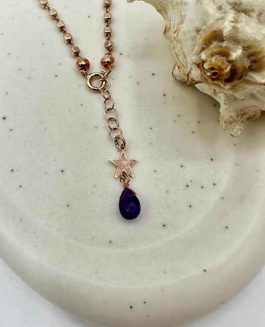 CAVIGLIERA CON CATENA A CUBETTI, STELLA E GOCCIA DI AMETISTA
