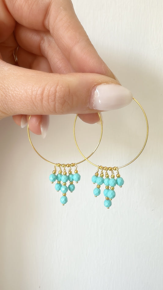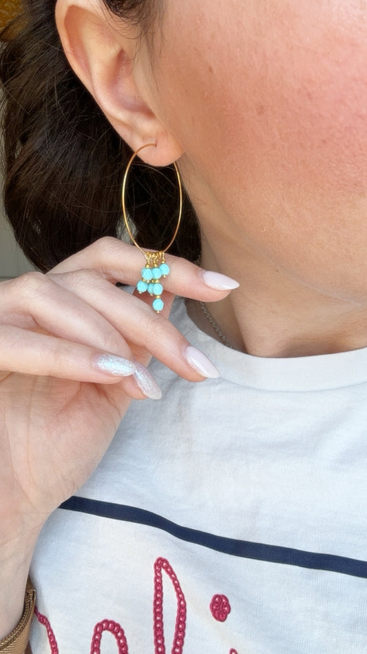 COPPIA ORECCHINI SPAIATI CERCHIO + MONACHELLA CON PIETRE SINTETICHE NEI TONI DEL PORPORA, GRIGIO, VERDE E CHAMPAGNE