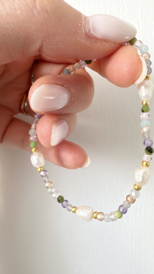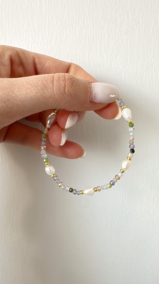 BRACCIALE DI PERLE IRREGOLARI ARGENTO/LILLA