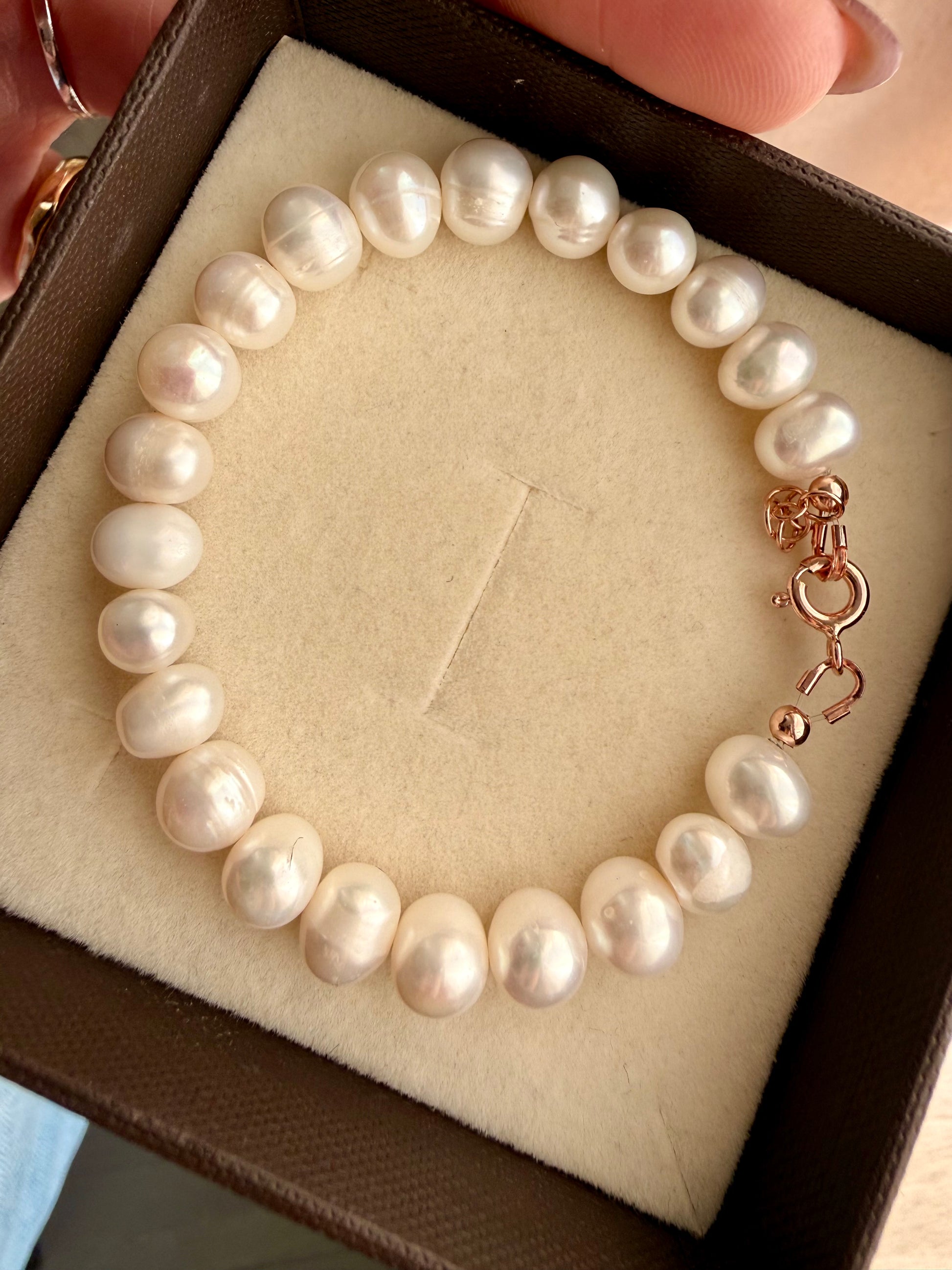 Goditi il tuo outfit con il nostro elegante bracciale di perle potato da 6-7mm.