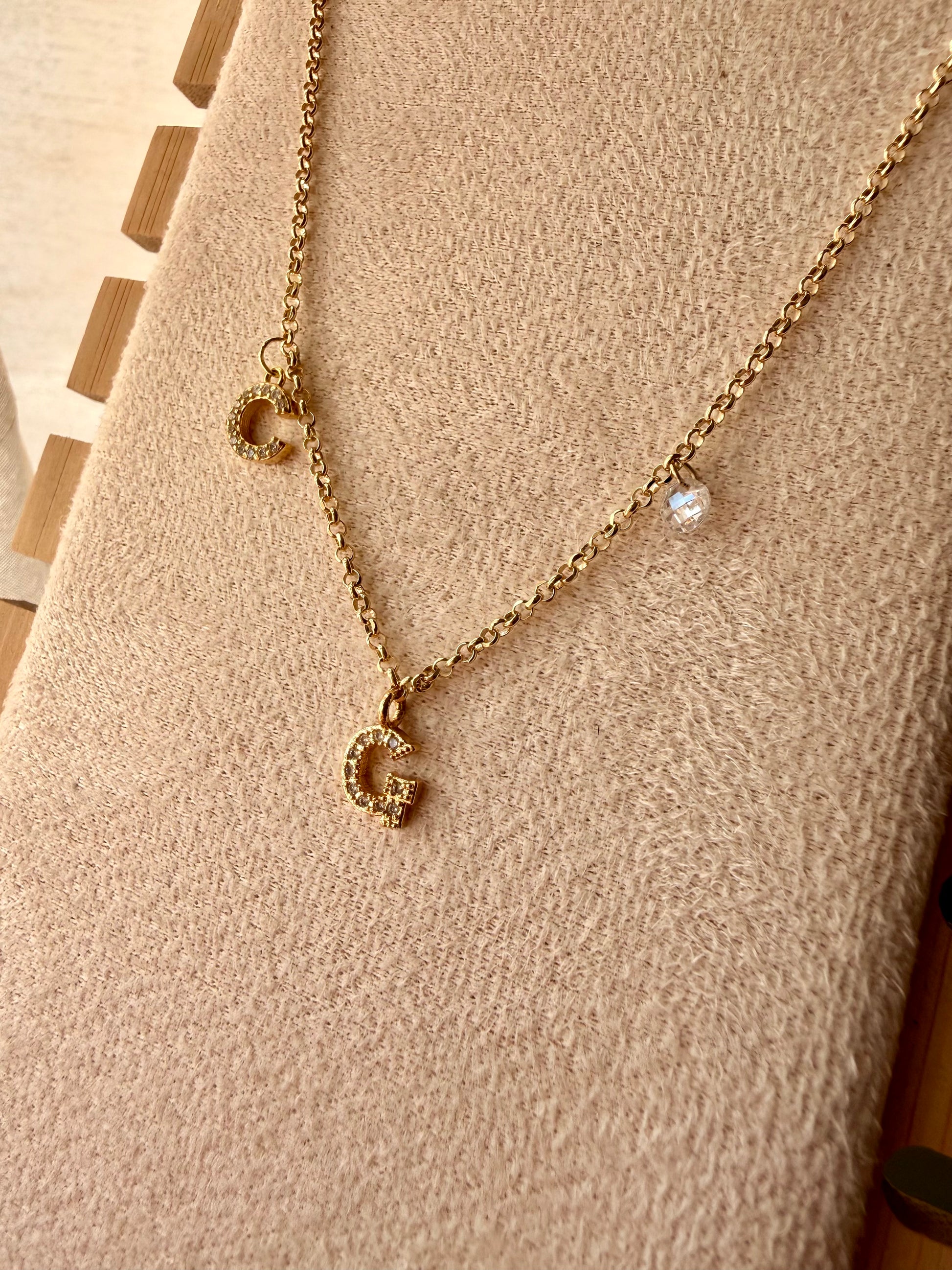 Questa collana in argento placcato oro giallo presenta due letterine zirconate, a tua scelta.