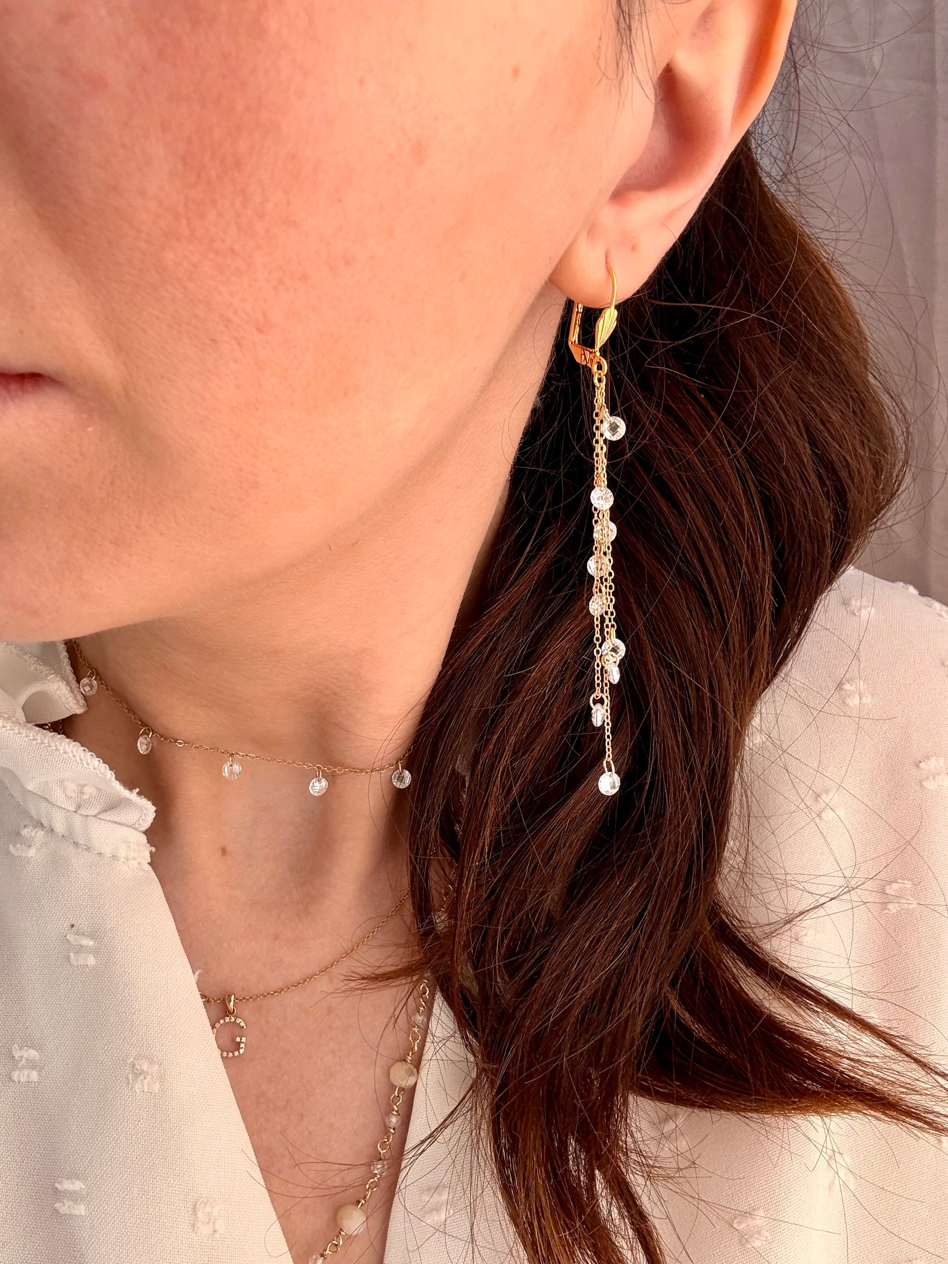 Grazie alla splendida cascata di catenelle e ai pendenti di zirconi bianchi, porteranno un tocco di eleganza e raffinatezza al tuo look.