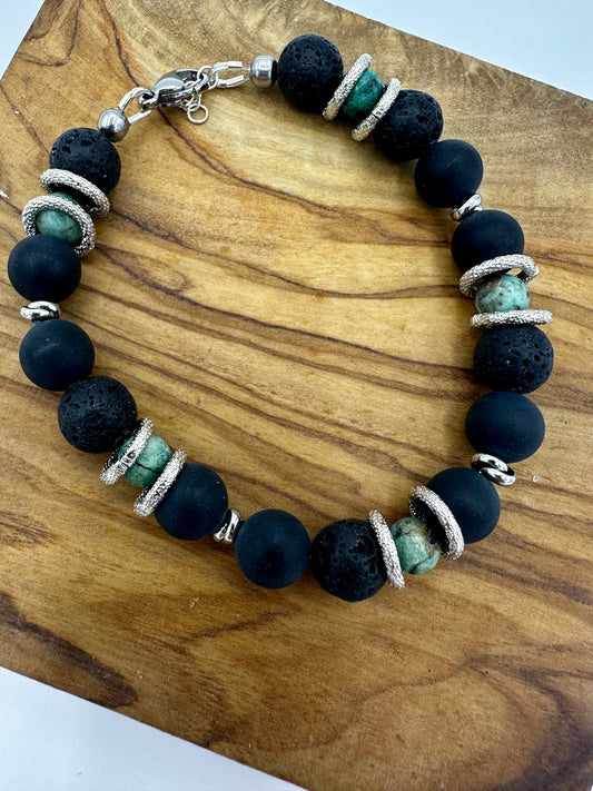 BRACCIALE CON ONICE, LAVA E TURCHESE AFRICANO