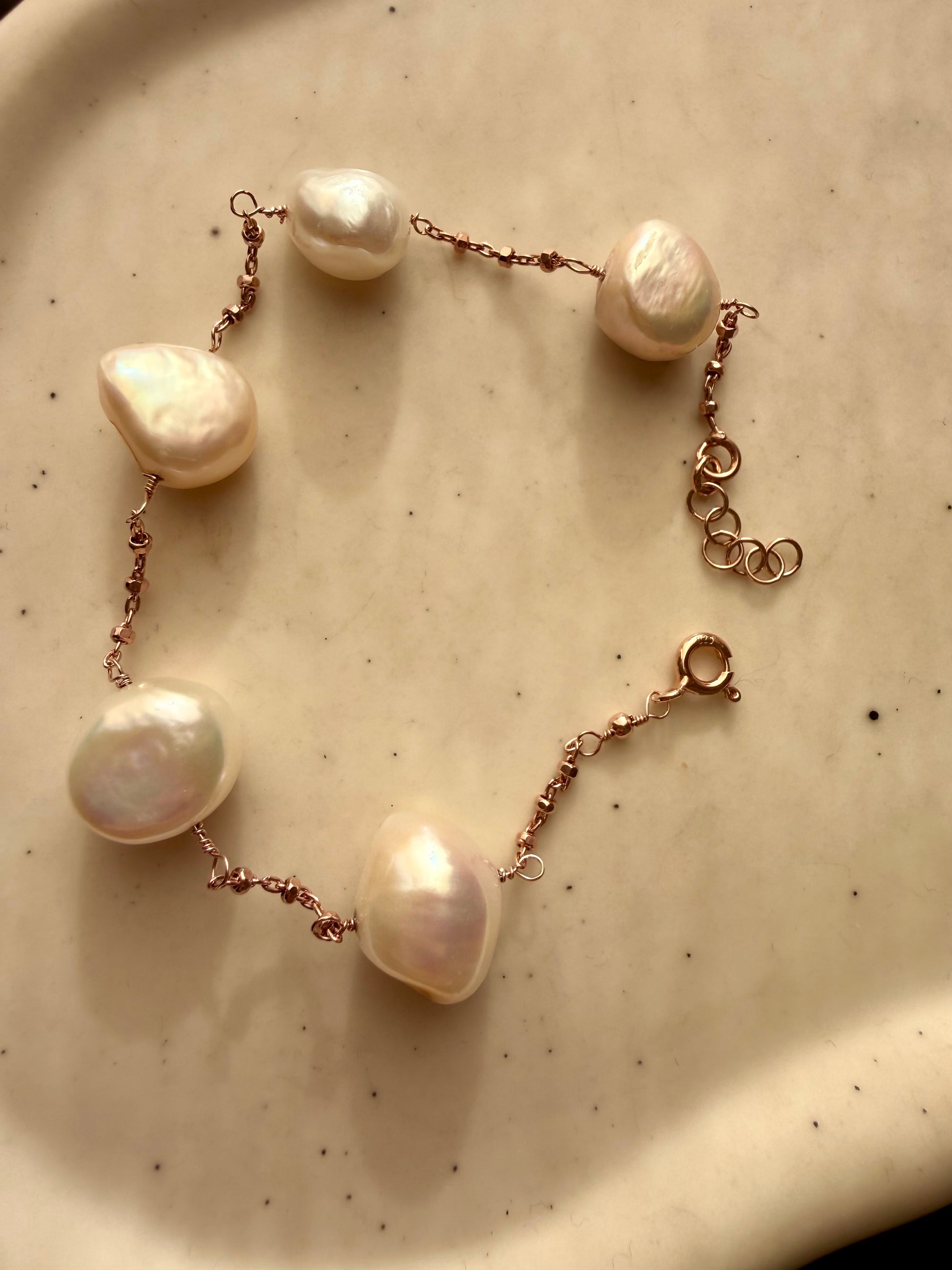 Le nostre perle tonde irregolari sono alternate a rondelle diamantate per un look moderno e raffinato. Grazie alla loro forma unica, le perle catturano la luce in modi diversi, rendendo questo bracciale un vero e proprio gioiello da indossare in ogni occasione.