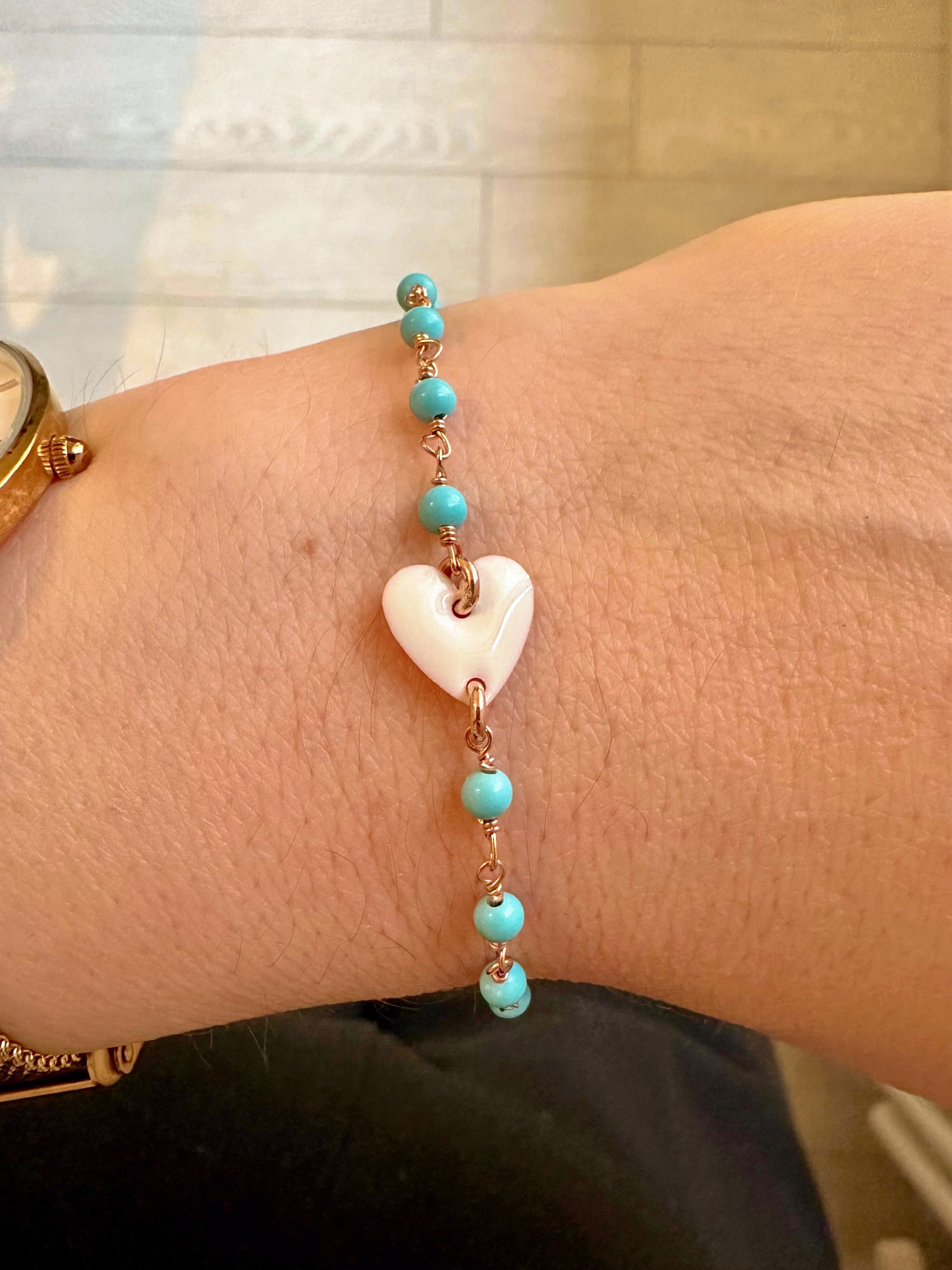 versione 5: catena rosario con pasta di turchese e cuore smaltato centrale