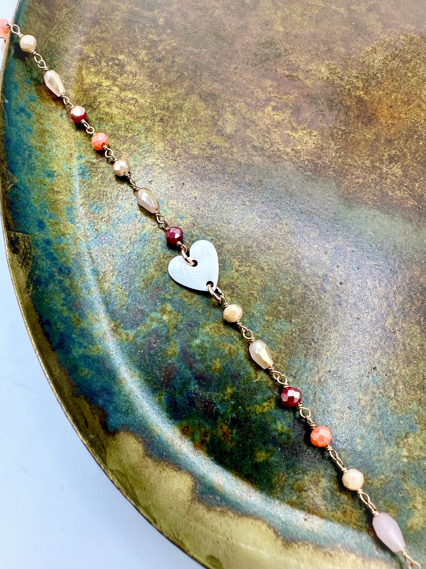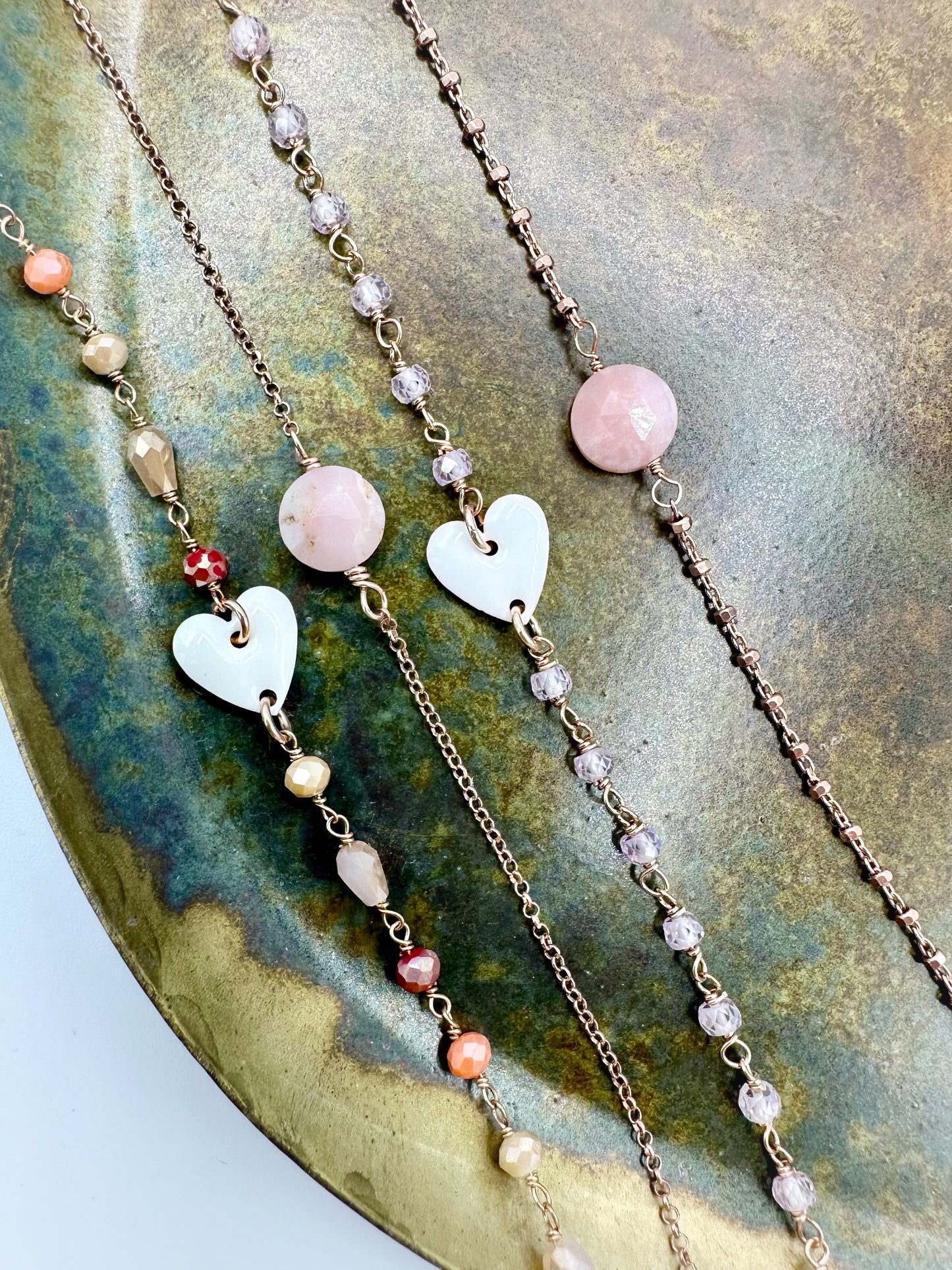 versione 1: catena rosario con pietre sintetiche e cuore smaltato centrale