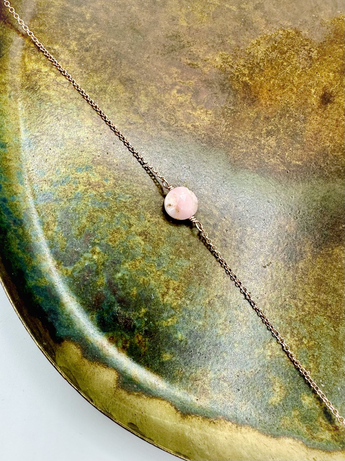 versione 4: catena con rondelle diamantate e opale rosa centrale