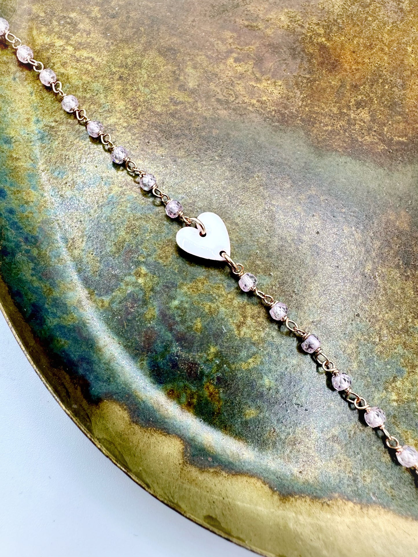 versione 3: catena rosario con zirconi rosa e cuore smaltato centrale