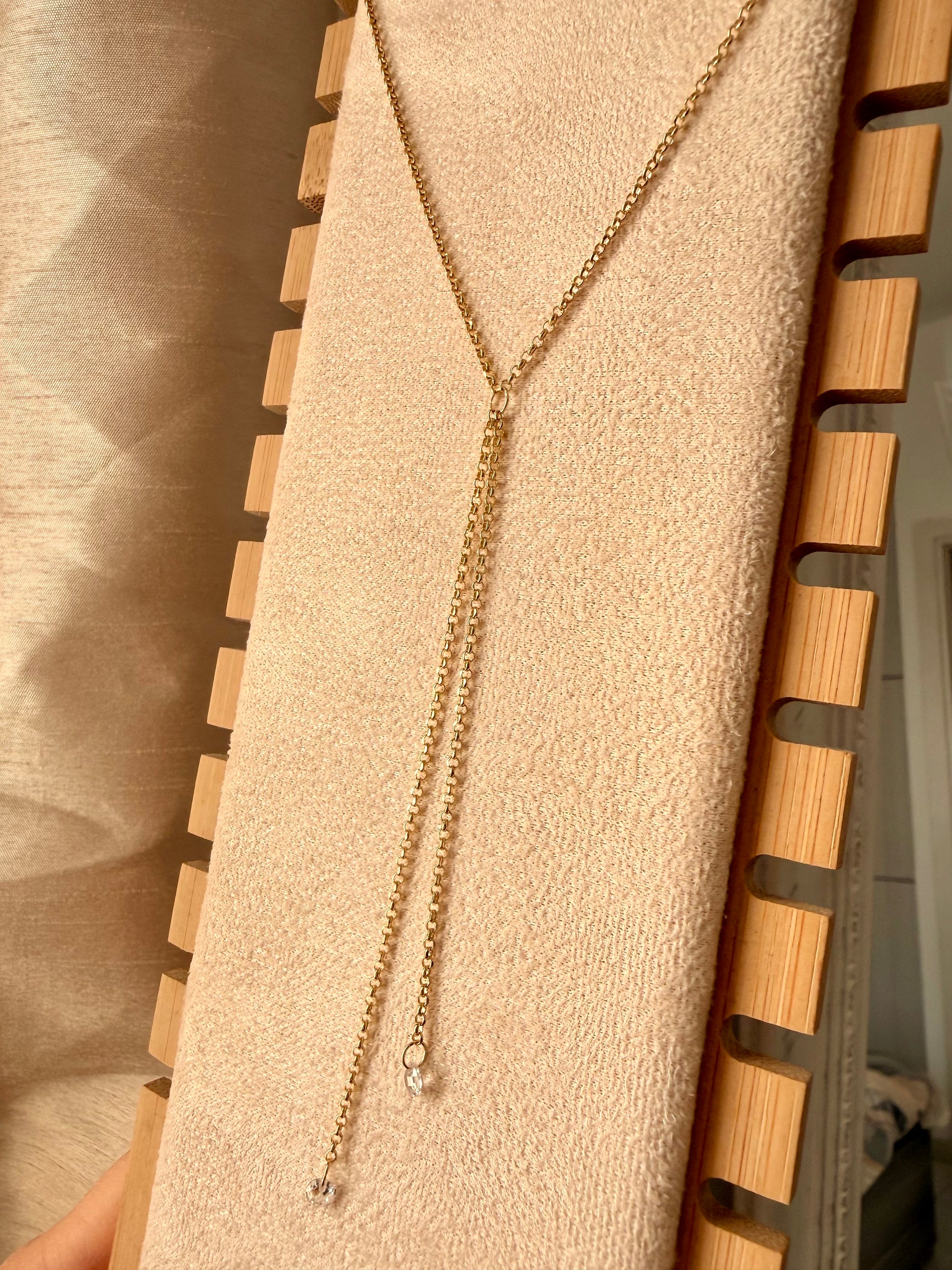 COLLANA CATENA ROLÓ CON CRAVATTINO PENDENTE E ZIRCONI BIANCHI